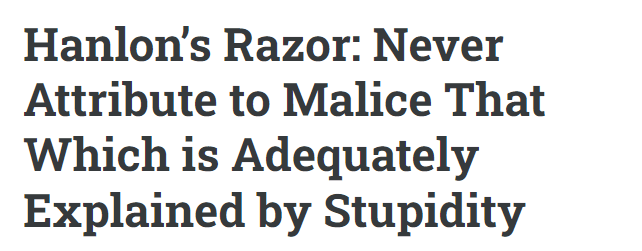 And now we are here. Phillip quote’s Hanlon’s razor, viz: