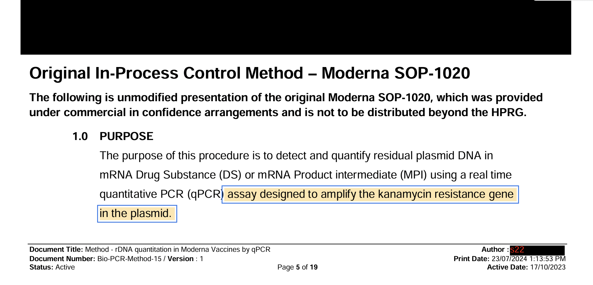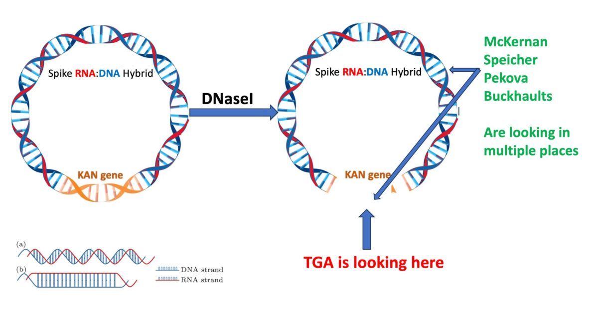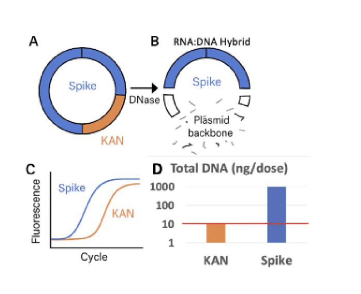 Where do they point the regulators? This is from the heavily redacted TGA document. The TGA claims everything is fine because they have checked the KAN gene, not the Spike gene.
