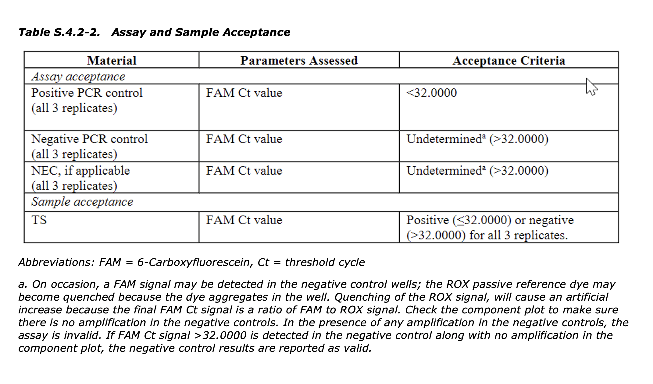 There acceptance criteria is only if this assay is below CT 32 and their NTCs are greater than CT 32. But they will not share this CT value because if they did it would reveal their 100X over the DNA limit issue.