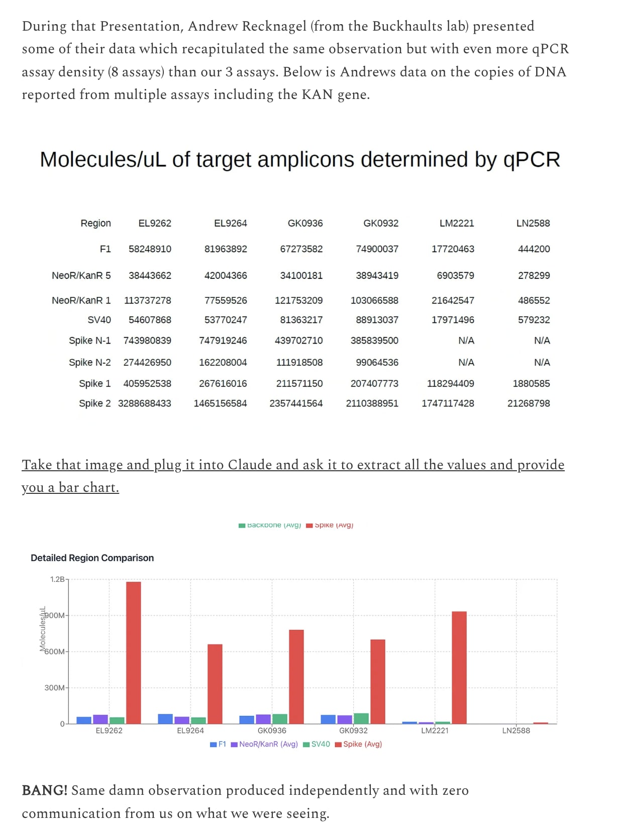 Another pointed question for the regulators? How did you get convinced to use the KAN assay? The clinical trial used Spike PCR products as IVT templates which had no KAN sequence? You literally got hoodwinked here. Why on earth would you use a qPCR assay that targets a region of the plasmid that is NOT amplified to measure the amplified DNA? Why would you do this when they had a Spike qPCR assay on record already?