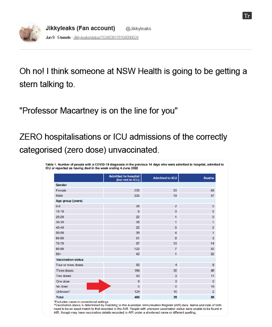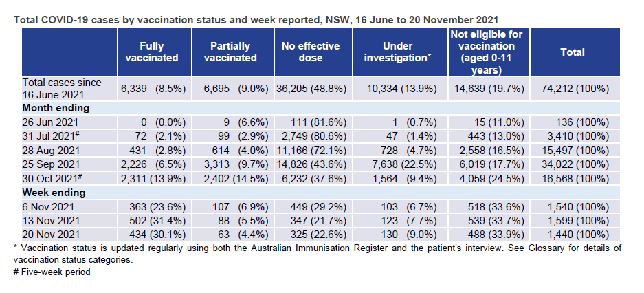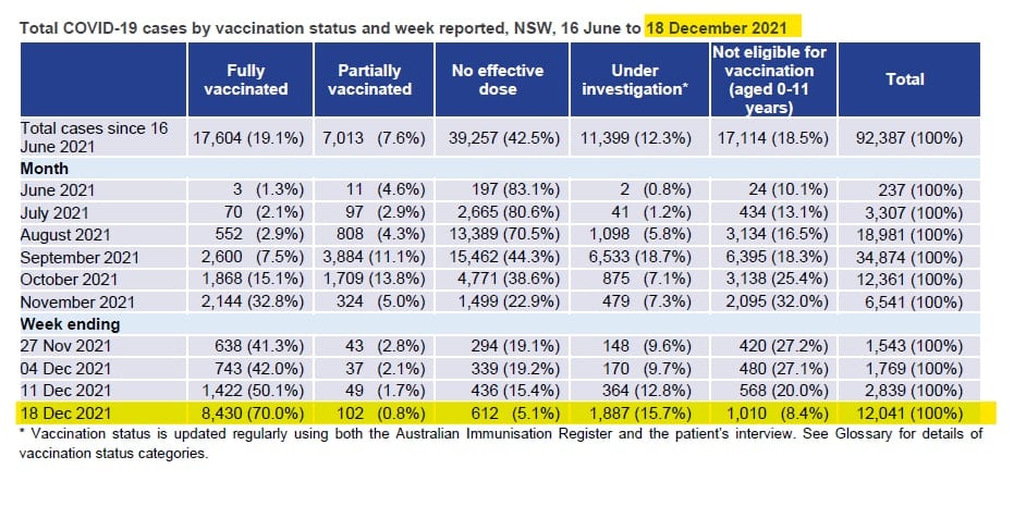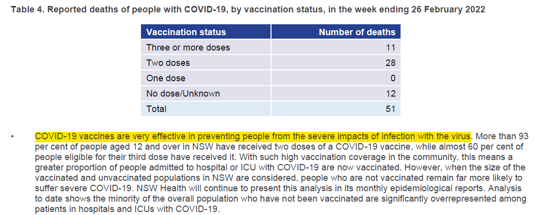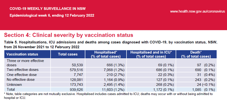 So, one would like to think that, because NSW health persists in making the claim that “COVID-19 vaccines are very effective in preventing people from the severe impacts of infections with the virus” (which was updated from the original “The COVID-19 vaccines available in Australia are very effective with evidence showing that people who are fully vaccinated are 70–95% less likely to get sick with COVID-19 compared with those who are not vaccinated”.