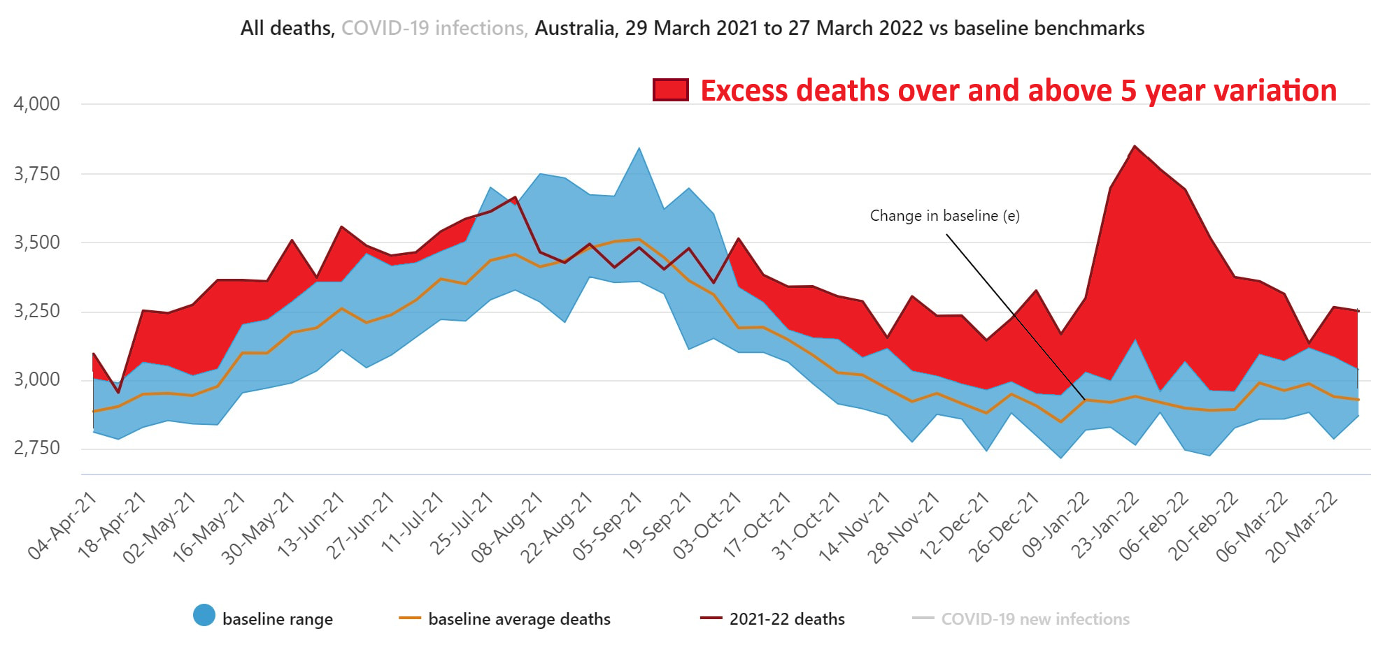 UPDATE 1: It is worth noting that, not only did the mandatory medical interventions (MMIs) fail to stop the spread of the virus, they resulted in the largest spike in overall mortality in Australia’s peacetime history. Well done, public health.