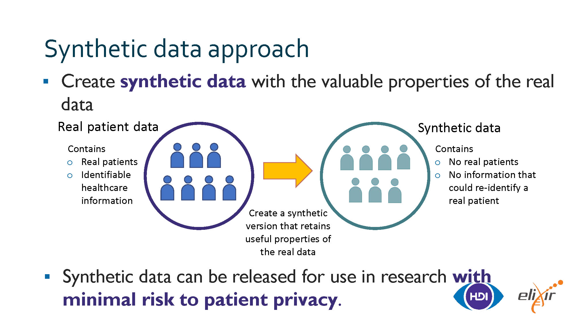 - New data is synthesised by OHDSI or Opensafely (both using the same models) based on existing input data, but with the ability to manipulate as required