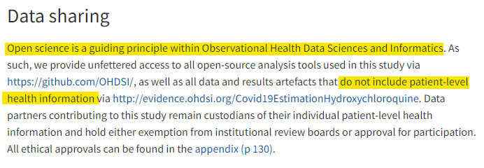 And no, you can’t see the data. And guess who provided it? OHDSI did. It’s in their data non-sharing statement (which sounds like they are sharing data but they aren’t because the patient-level data is blocked).