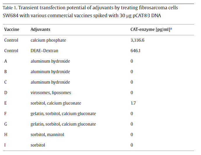 So why on earth would a paper come out in 1999 showing that “vaccine adjuvants can’t transfect plasmids in human cancer cells” using a cell line that nobody had ever used in a publication, and was subsequently rebutted by a paper from the same institute7?